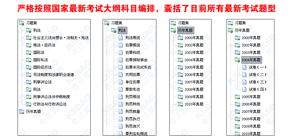 《国家司法考试宝典(完整版)》系司法考试试题辅导软件,适用于司法考试,软件试题库设计紧扣最新司法考试大纲、考试教材,符合司法考试考试题型与考试科目,复习辅导资料、考试资料丰富,免费试用、试题库巨大(注册版试题量达8千多题、234多万字),辅导软件收录司法考试历年考试真题、考前冲刺、押题试卷、复习试题集、综合考前冲刺,试题辅导软件囊括了目前所有的最新司法考试科目:民法、商法、经济法、民事诉讼法与仲裁制度、刑法、刑事诉讼法、行政法与行政诉讼法、法理学、法制史、宪法、法律职业道德、国际法、国际私法、国际经济法、模拟试卷、历年真题:2010年真题、2009年真题、2008年真题2007年真题、2006年真题、2005年真题、2004年真题、2003年真题、2002年真题、2000年真题、1999年真题,并提供专业级的司法考试解题方法、答题技巧、考试要点精解。通过全面、针对性强的强化考试辅导训练、考前培训,提高您司法考试的应试能力,辅导您考试成功。我们免费提供司法考试报名时间、报名地点、报考条件、考试时间、成绩查询、合格分数线。